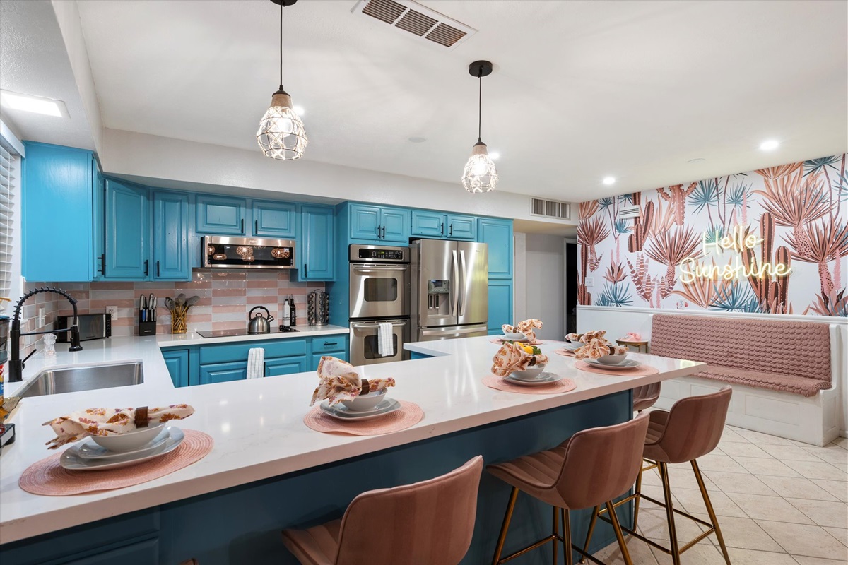 The home features a bright, open layout that allows everyone to gather easily while still enjoying personal space. Warm desert tones, natural light, and modern finishes create a peaceful energy from the moment you walk in.